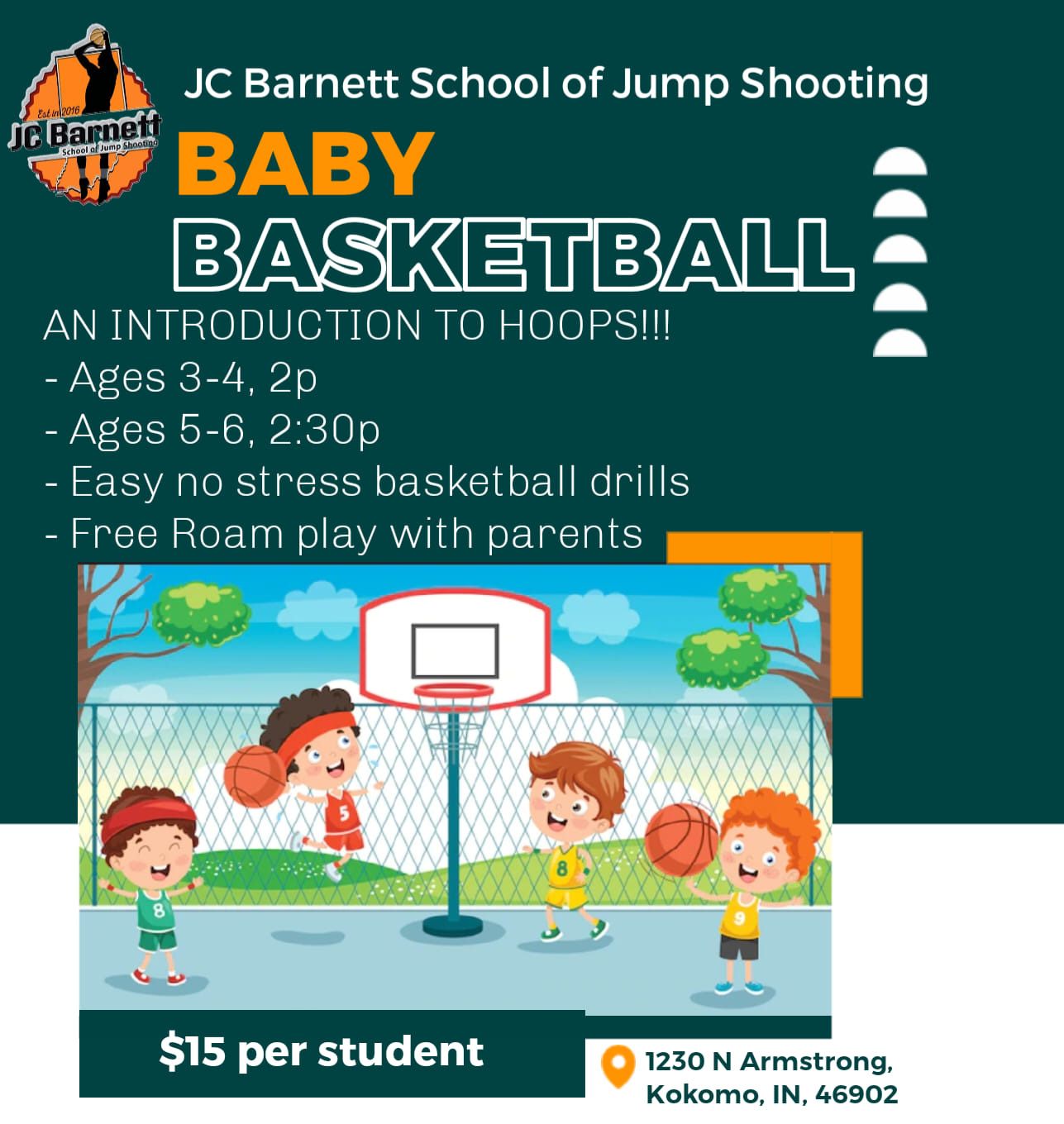 This article is brought to you by the JC Barnett School of Jump Shooting, featuring Baby Basketball on Sat., Dec 10. Introduce your babies to this great game and see the smiles on their faces. Bring a mini ball or a small rubber play ball.