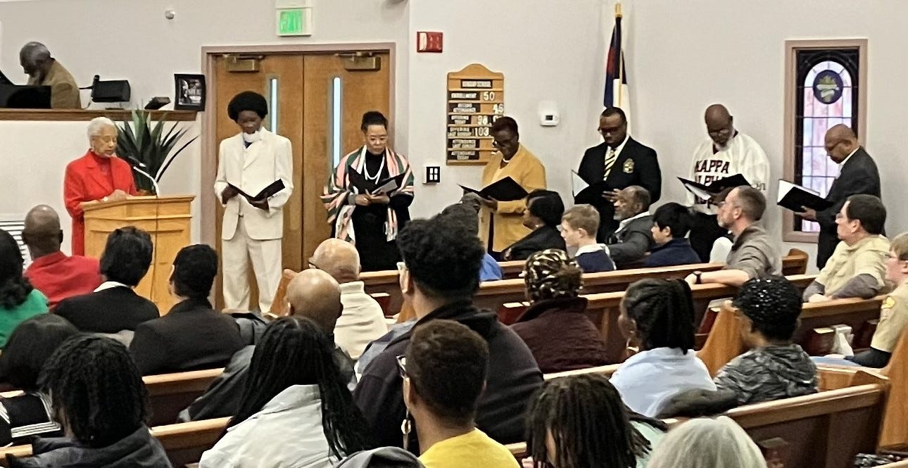 A presentation recounting the words of Dr. King was given by the students of the Acacia Academy, and closing remarks were given by Clarence Grier and Anita Upchurch. An affirmation of faith was presented by members of nine community sororities and fraternities.