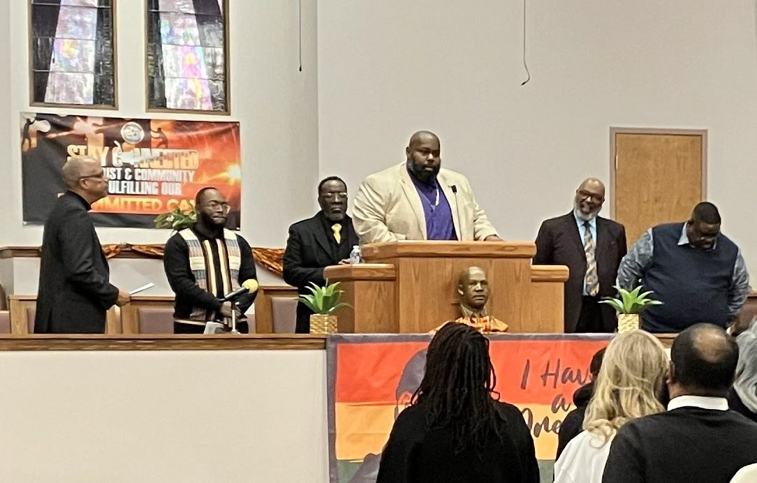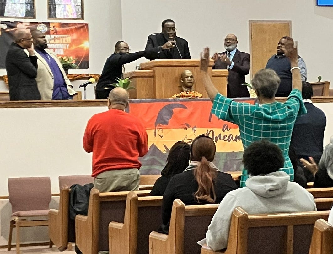 The annual Community Ecumenical Service to honor Rev. Dr. Martin Luther King Jr. took place in that church, and those in attendance were called to action in a way that cannot be ignored. While there was singing and recitations of Dr. King’s words, it was the blistering address from Rev. Dr. Lonnie Anderson of Mt. Pisgah Missionary Baptist Church that commanded the crowd’s attention.
